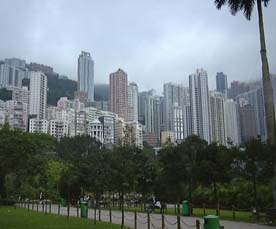 greenery provide a dramatic contrast to the high towers of Hong Kong.