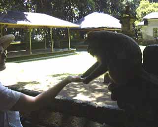 and inhabited by monkeys, sacred, because they live on the temple grounds.
